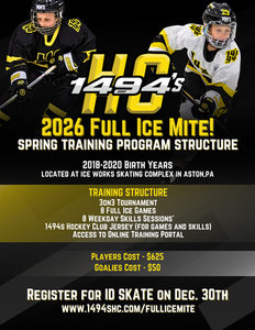 Our Full Ice Mite Program is designed to teach the fundamentals of the game, enhance on-ice experience, and foster a lifelong love for hockey.